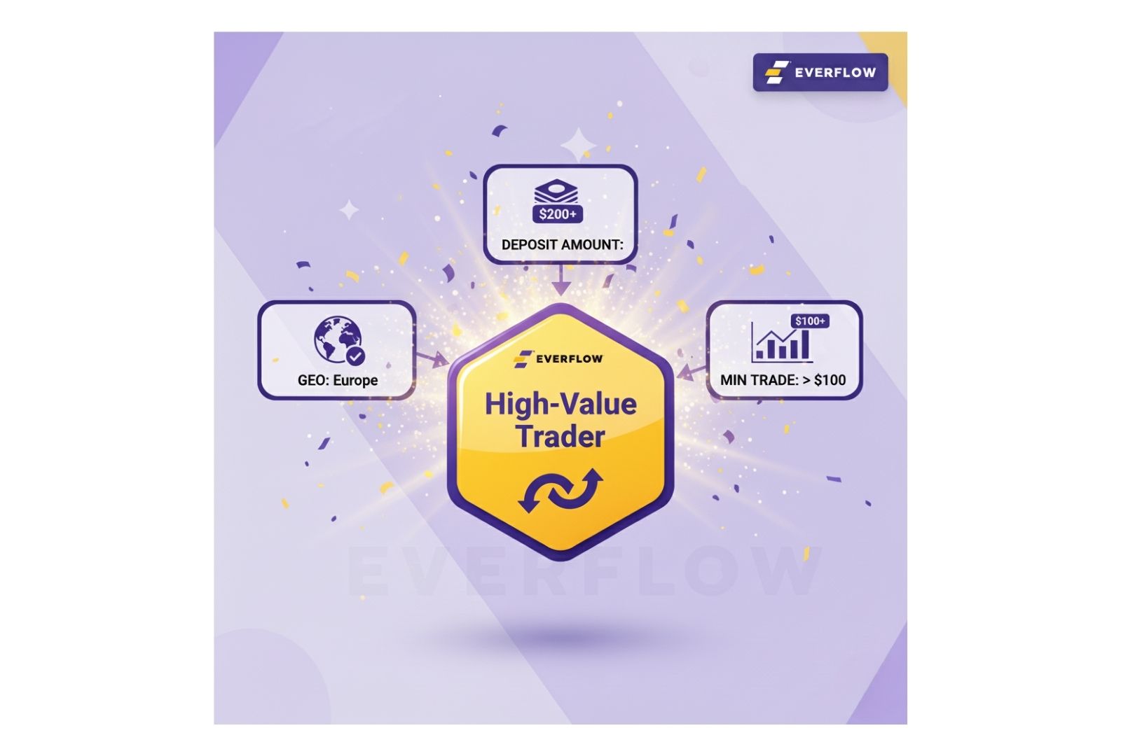 You can track a user's behavior across multiple events, offers, and partners. By combining data points (like geo, deposit_amount, or level_reached), you can build rules to automatically apply special payouts or bonuses when a user's combined activity meets your high-value criteria.